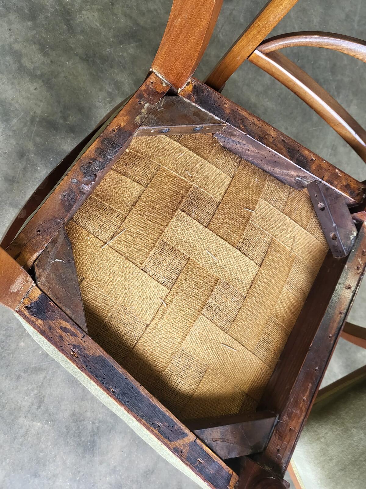 Antique Edwardian 4 x beech dining chairs green