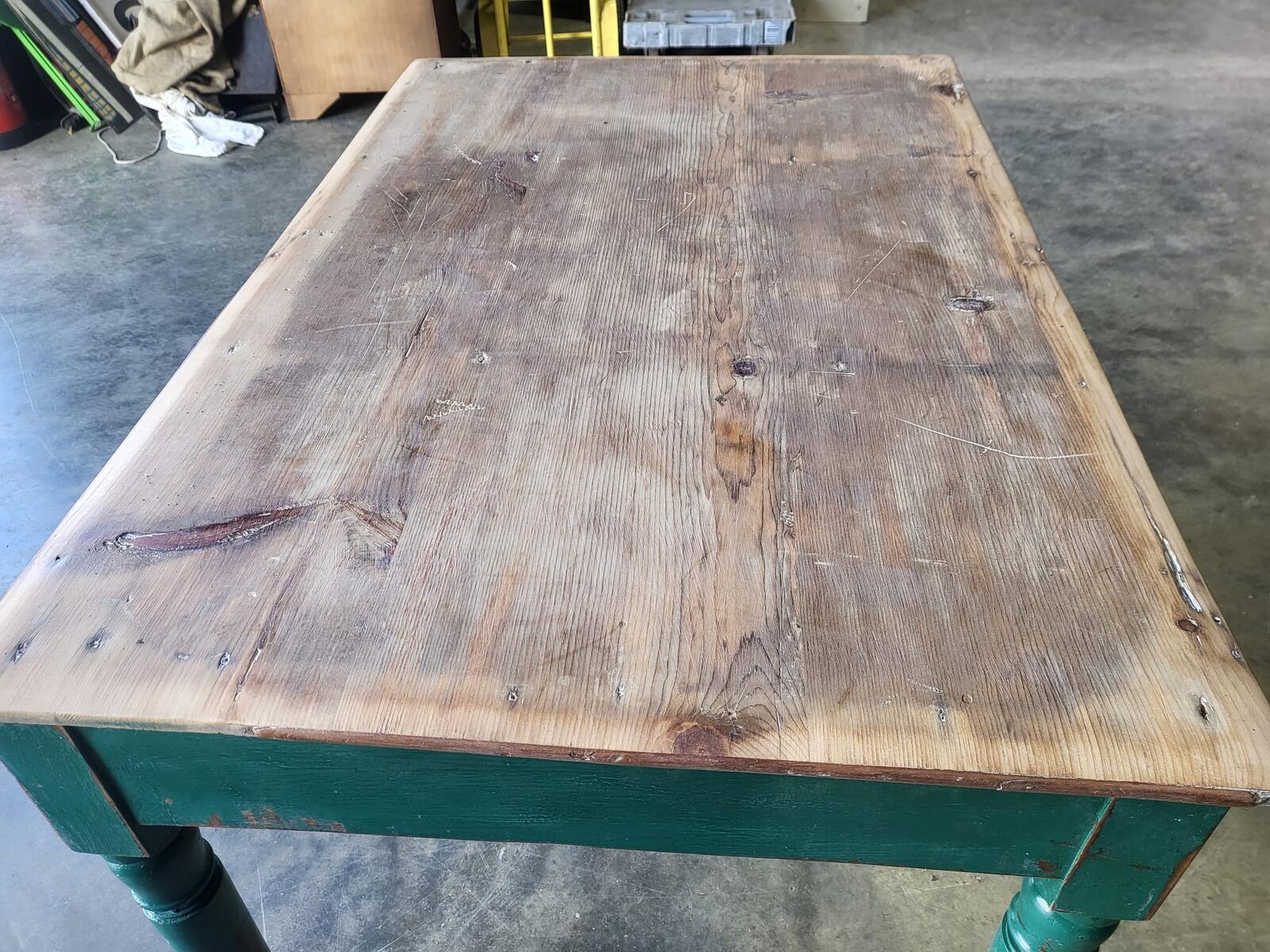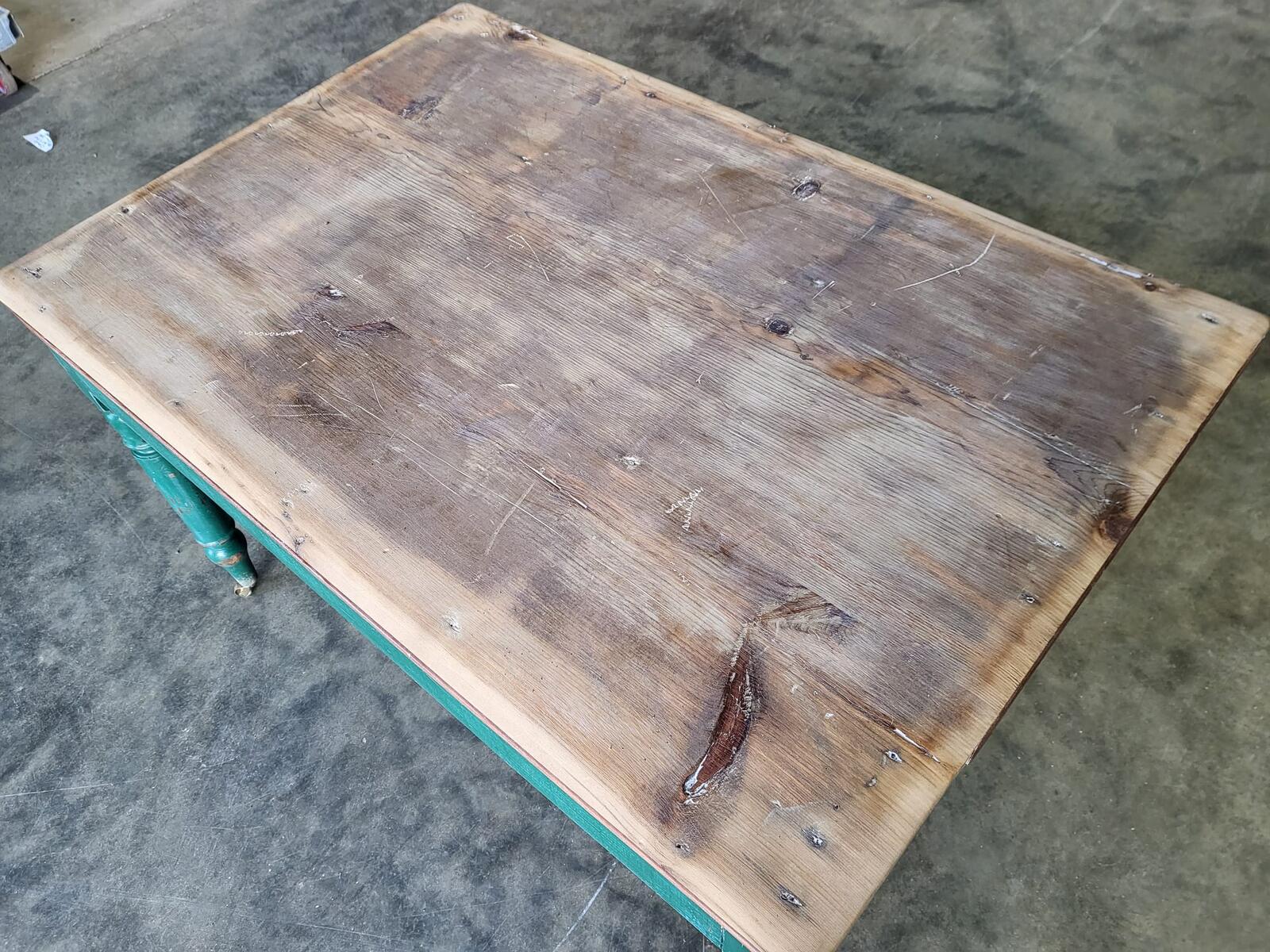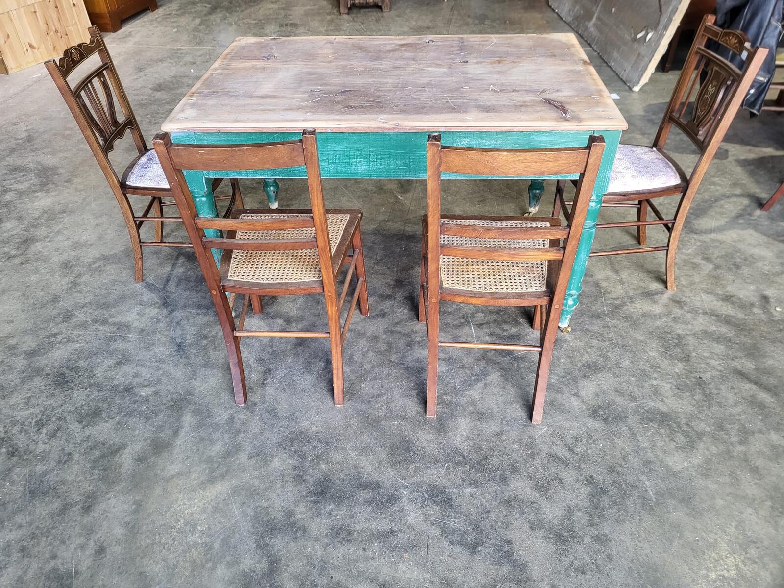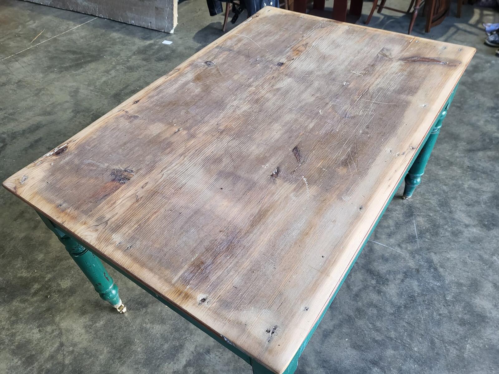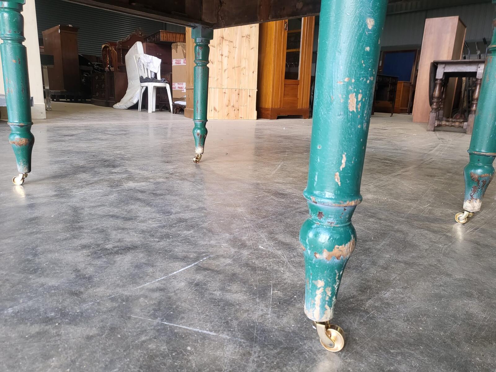 Antique Edwardian kitchen dining table castors seat 6 green