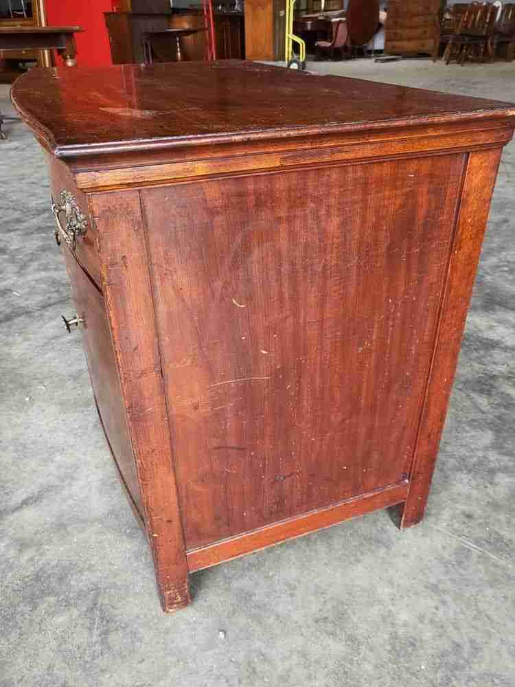 Antique Edwardian low bow front small chest of drawers with cupboard