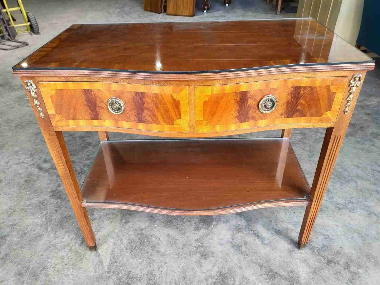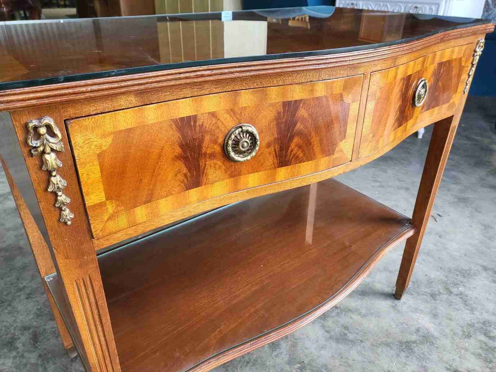 Antique Repro French Inlaid 2 Tier Serpentine Sideboard Server Cutlery Drawers