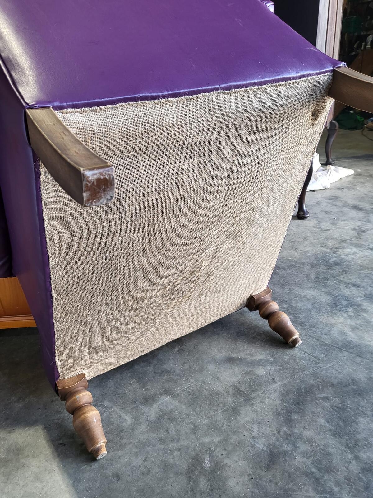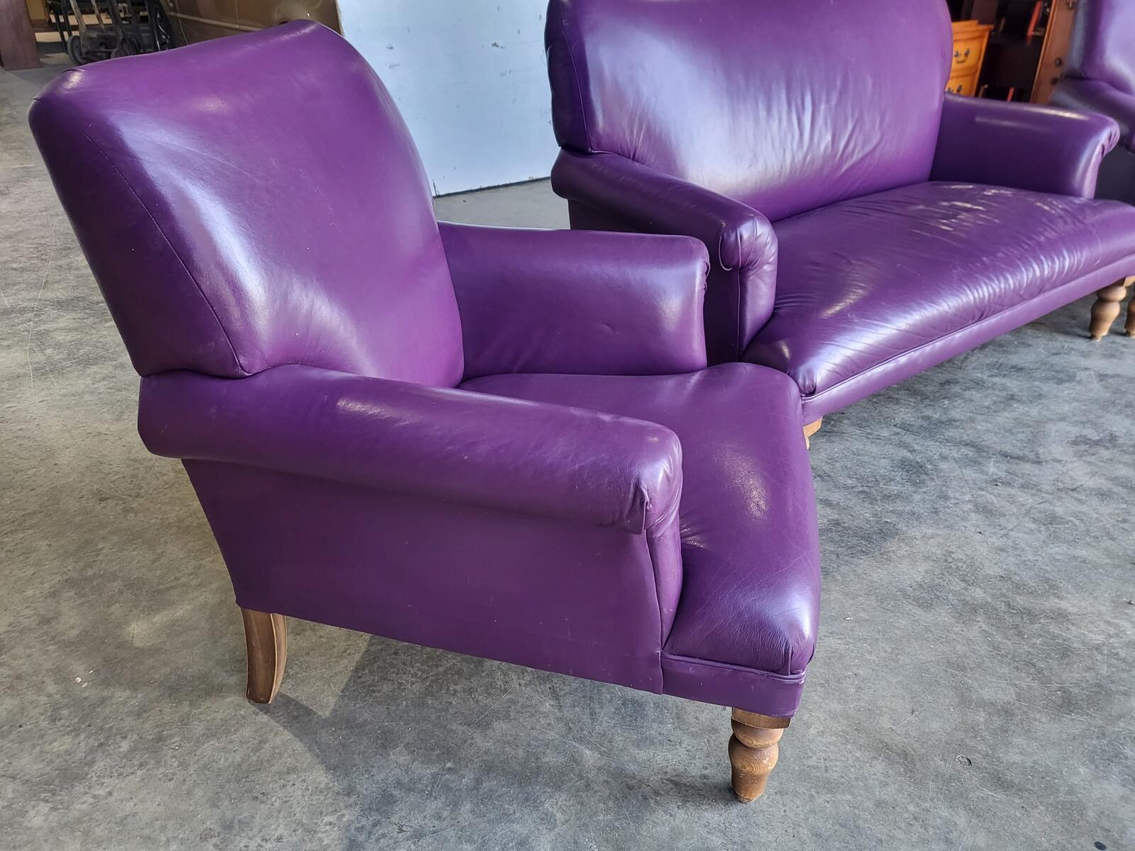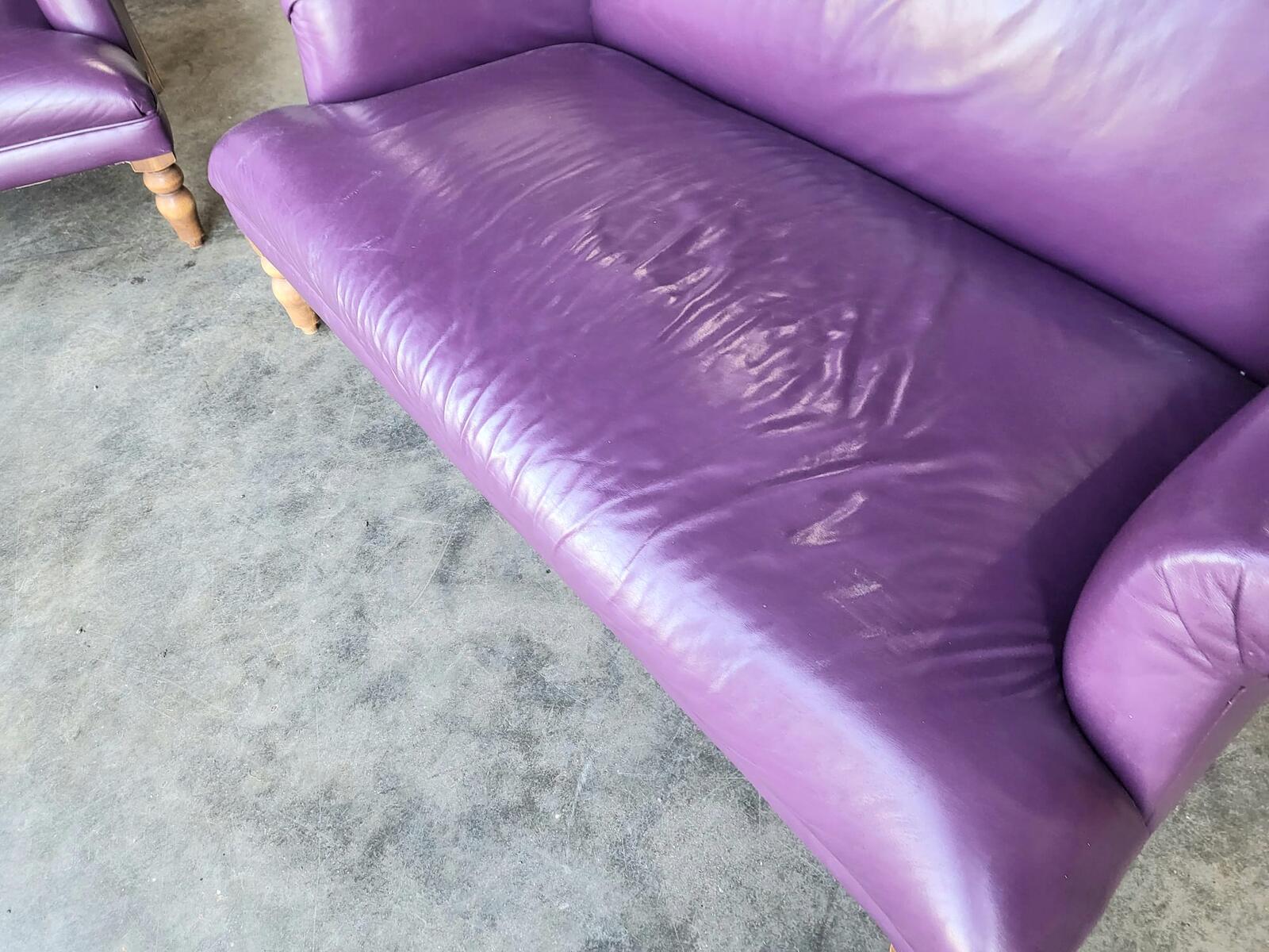 Antique repro leather 2 seat sofa 2 x armchairs wood legs