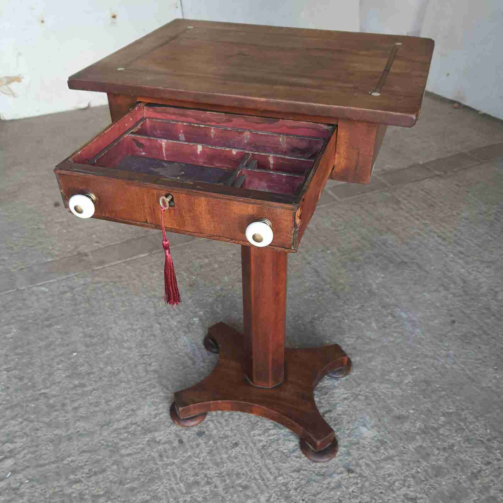 antique,georgian,mahogany,pedestal,quad base,end,side,table with sectioned drawer with pot handles good used condition,normal usage marks/wear re age,key not working sizes 44 cm w x 33 d x 68 h