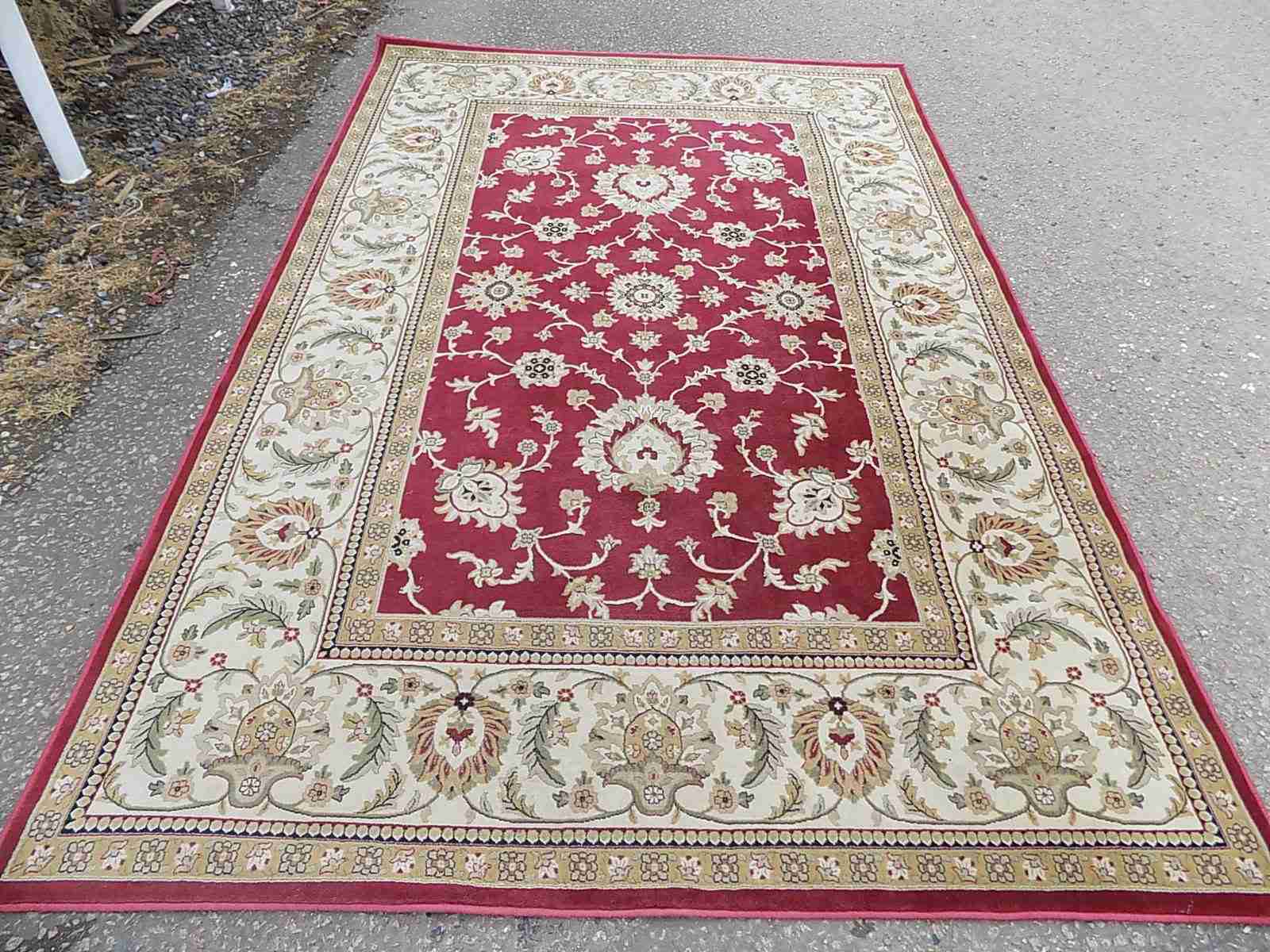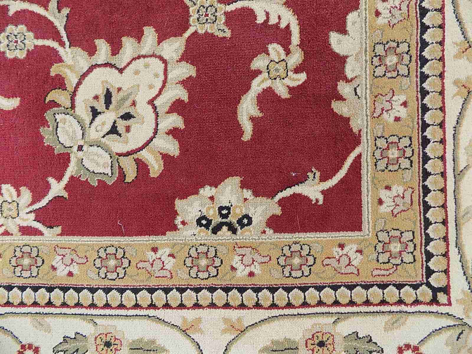A rectanglular red and cream carpet a large rug in a floral design 200 cm x 294 cm 6'5" x 96" a polypropylene carpet