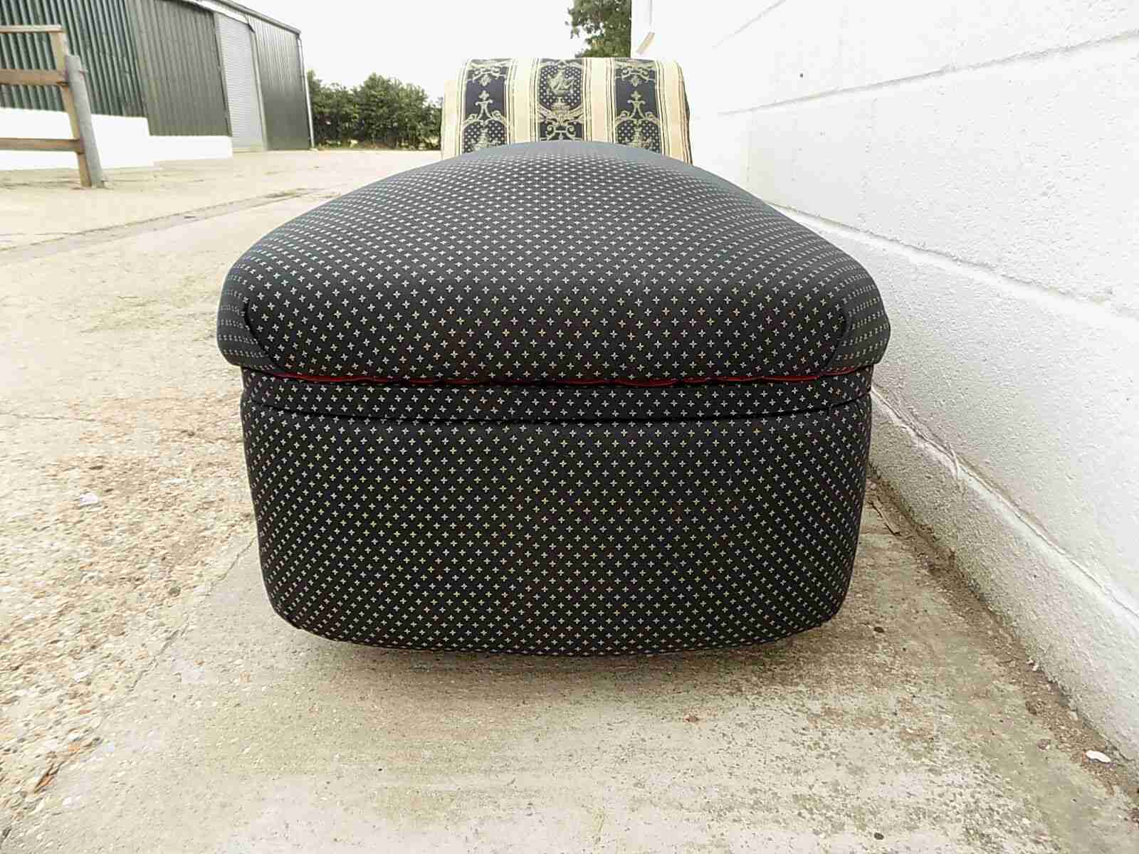 a lovely vintage 1930's day bed a sofa or ottoman with red fabric storage area a small chaise longue set on pot castors a blanket chest or bed end storage = 72 cm h x 61 d x 159 w x seat h 54